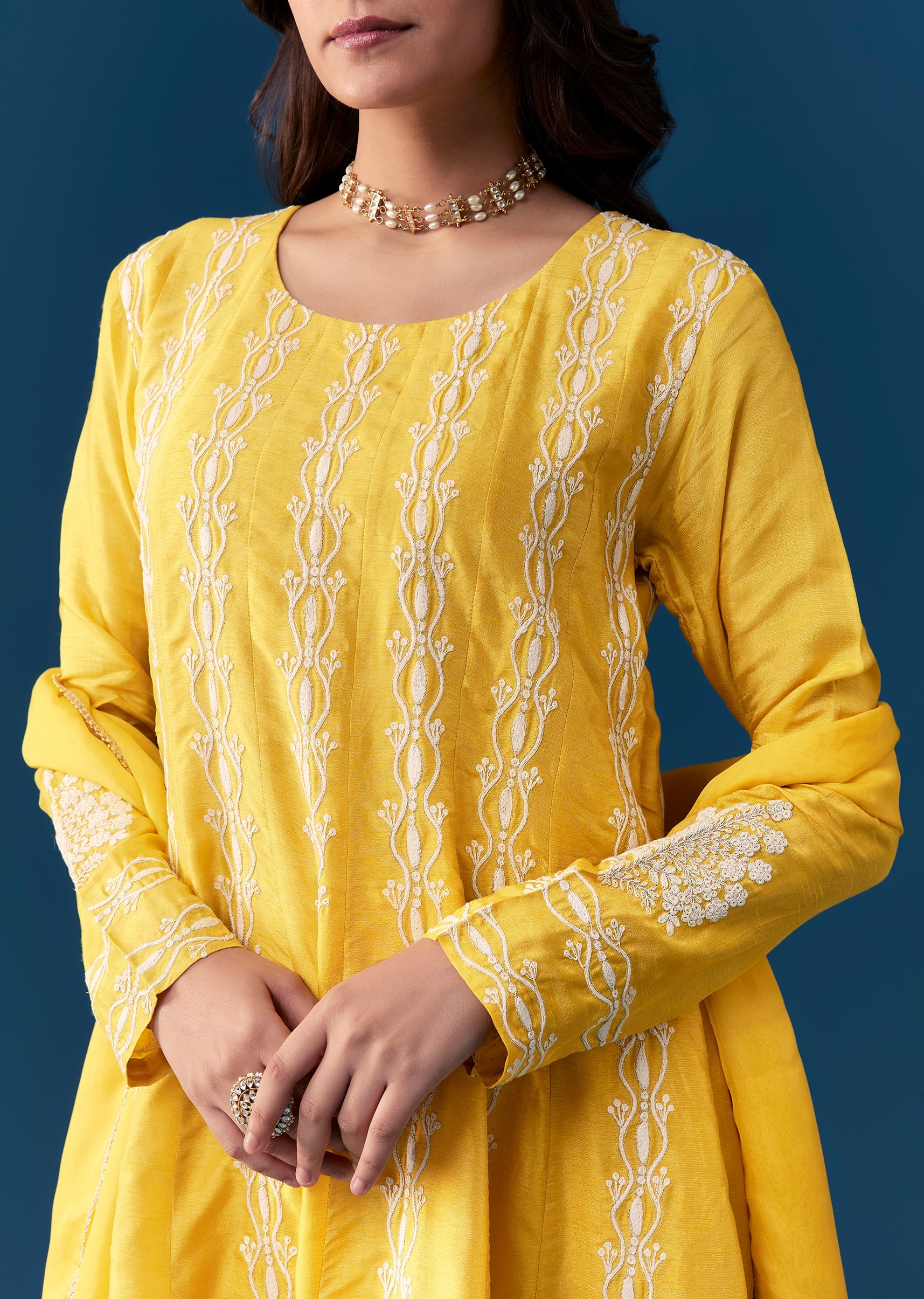 Yellow Pastel Pakistani Style Anarkali Suit With Thread Work