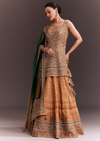 Yellow Printed and Mirror Embroidered Lehenga Set