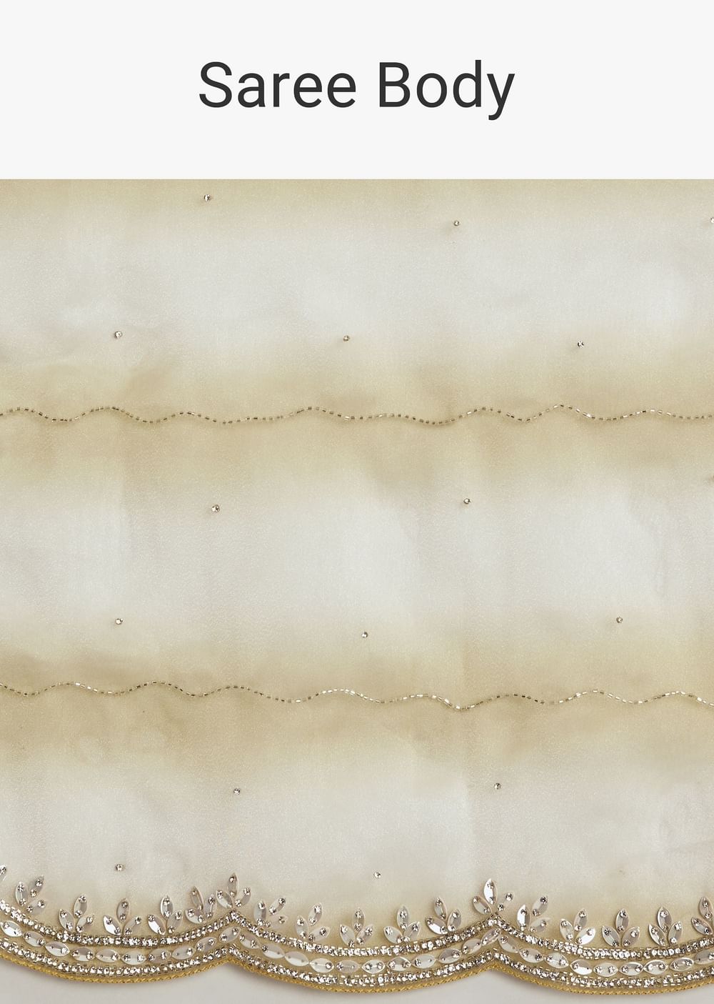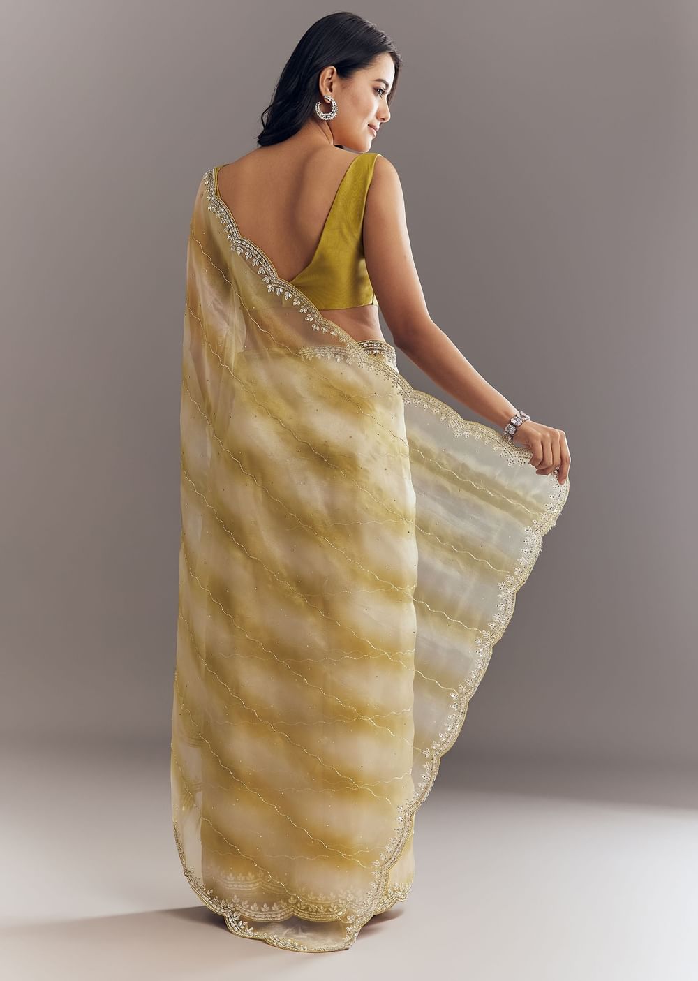Yellow Shaded Glass Tissue Saree With Cutdana Embroidery And Scallop Border