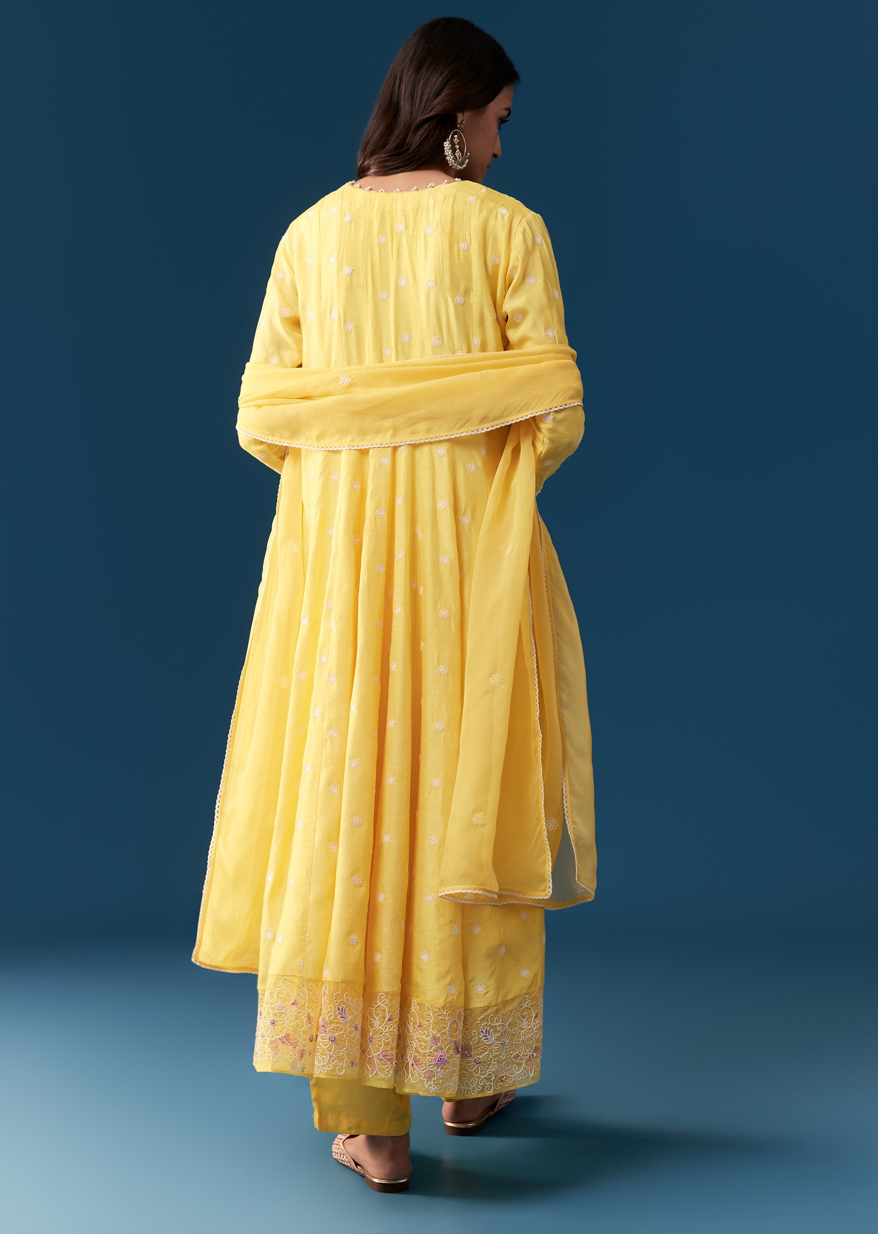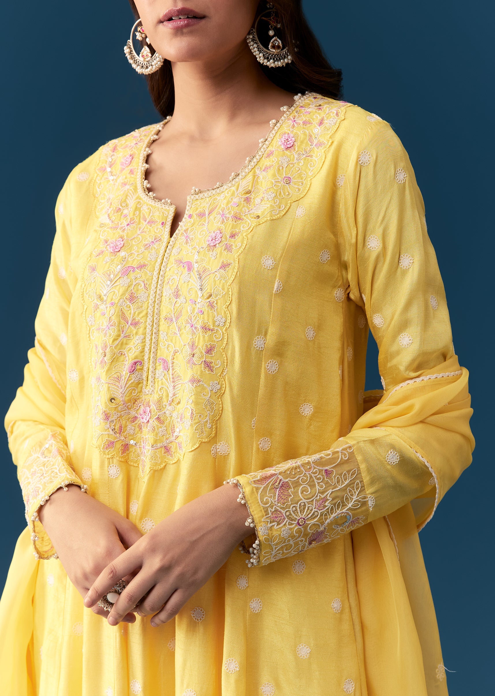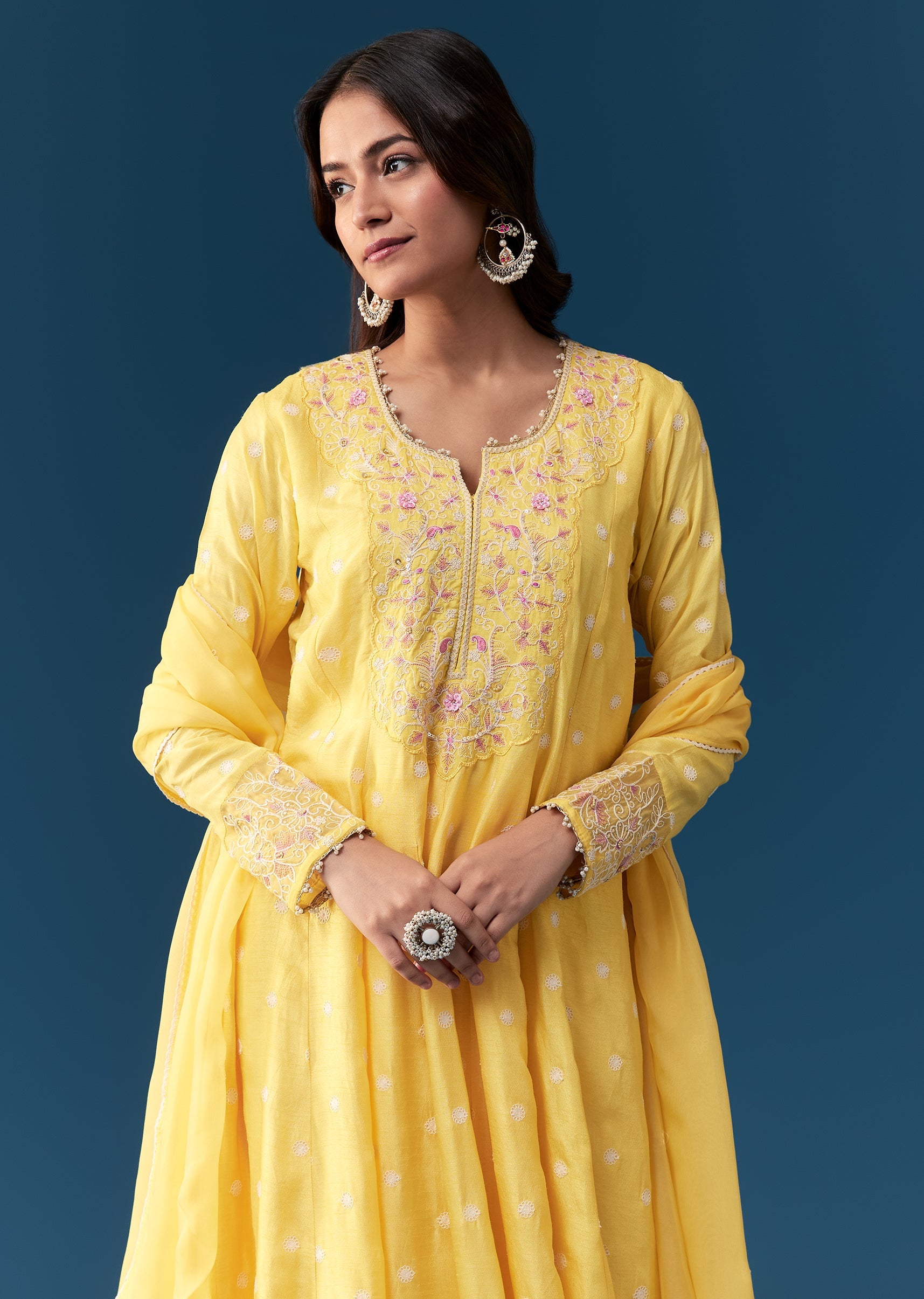 Yellow Silk Anarkali Suit With Resham And Sequins Work