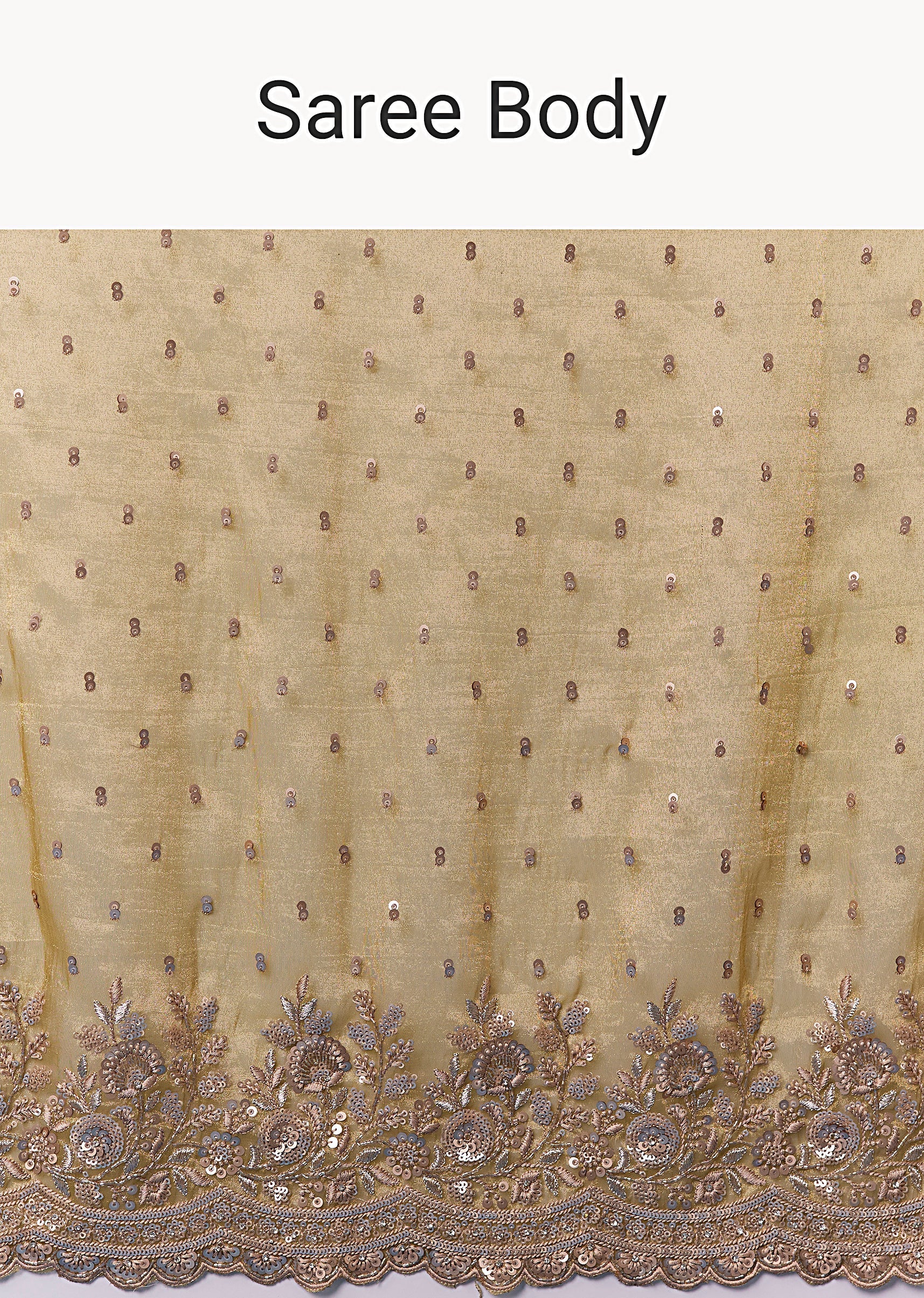 Yellow Tissue Saree With Scallop Heavy Embroidered Border And Sequin Work