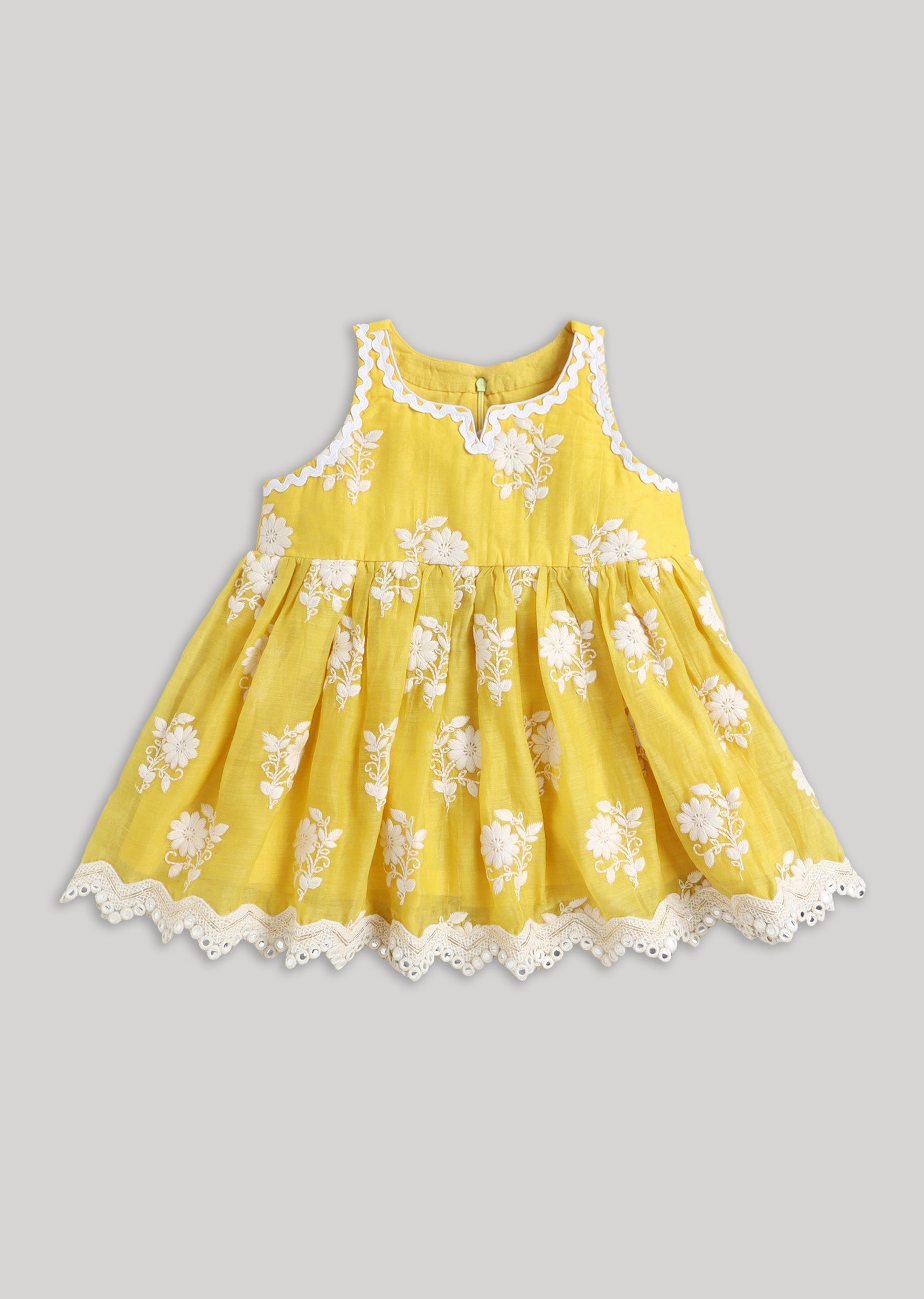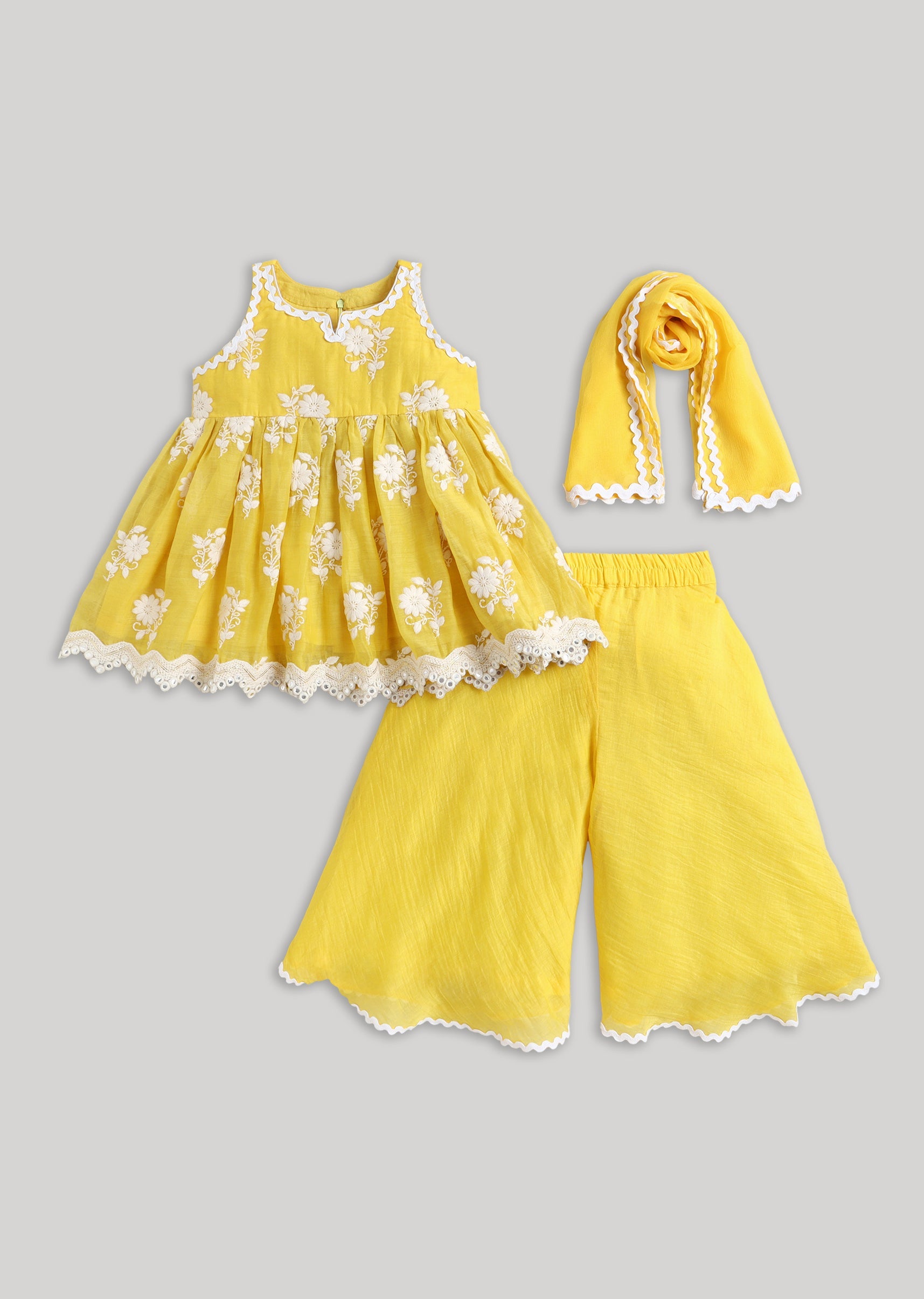 This salwar kameez set pairs a cheerful yellow tone with white accents for a fresh festive look. Chanderi fabric gives it a premium finish while staying lightweight for children. Thread/resham... More Product Details